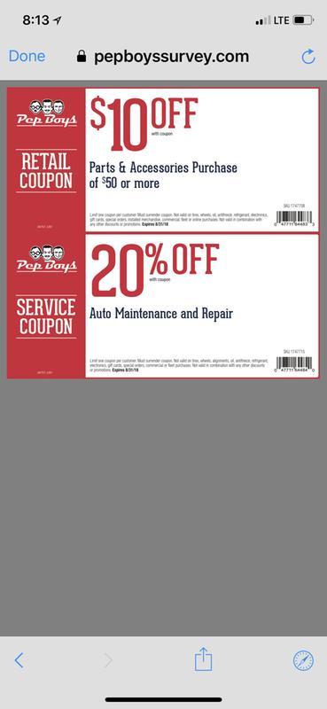 $20 Off Pep Boys Coupons, Promo Codes - dzmind.com Save with 13 verified $20 Off Pep Boys promo codes and coupons for April 2022. Today's top $20 Off Pep Boys coupon: $20 Off Mobil1 Synthetic Oil Change Service AutomotiveAuto Parts Special Offer! $20 Off Mobil1 Synthetic Oil Change Service No coupon required. Shop in-store to save. Get Offer in Pep Boys Coupons